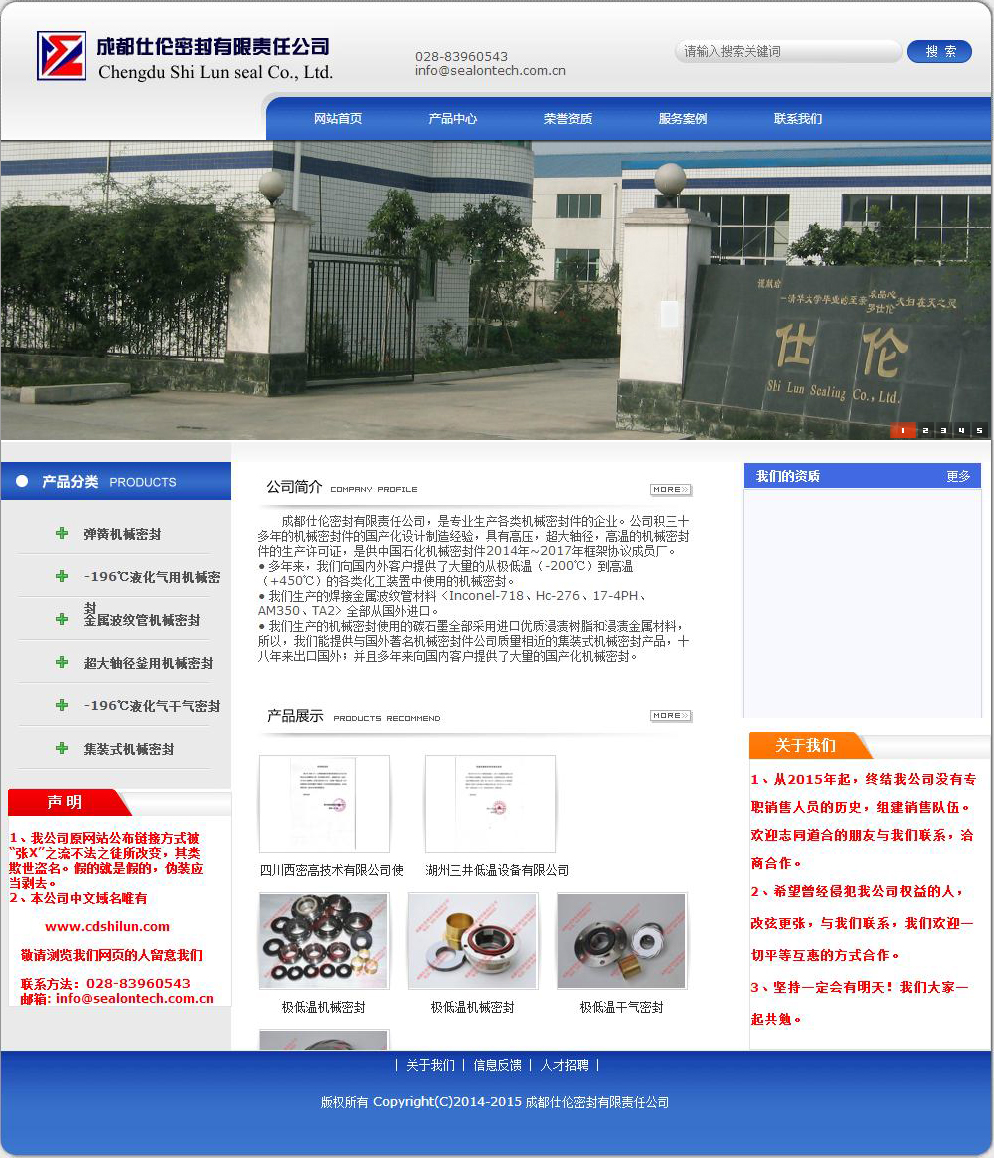 成都仕伦密封有限责任公司,是专业生产各类机械密封件的企业。公司积三十多年的机械密封件的国产化设计制造经验,具有高压,超大轴径,高温的机械密封件的生产许可证,是供中国石化机械密封件2014年~2017年框架协议成员厂。